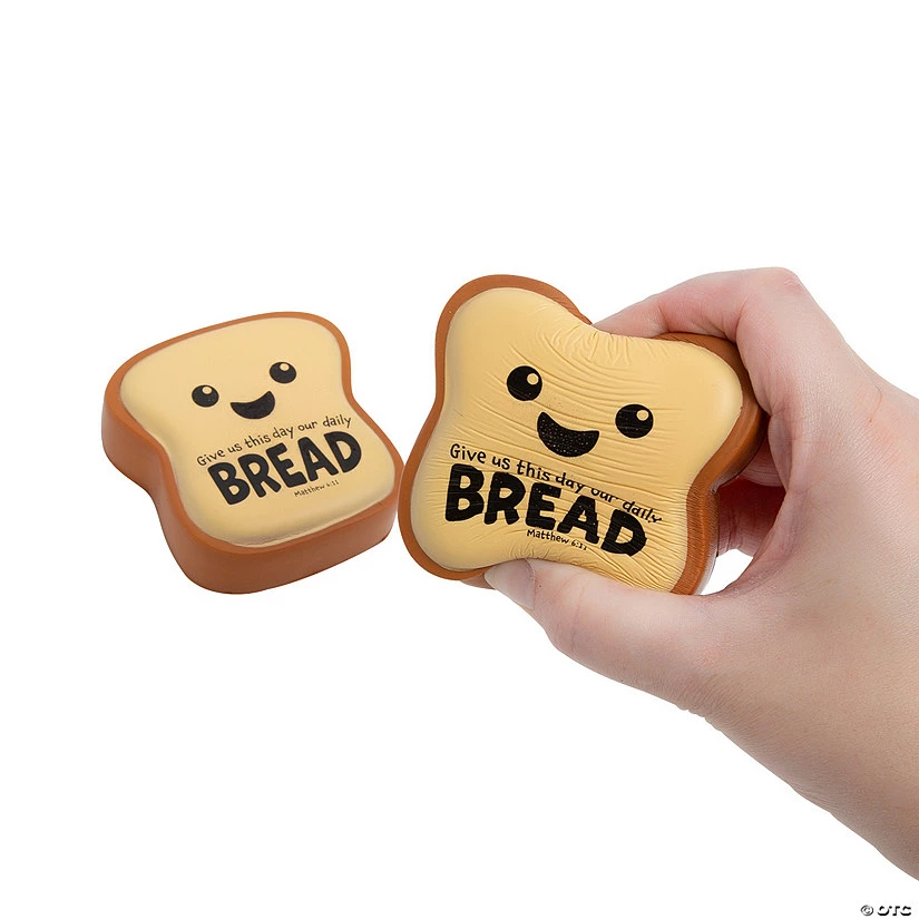 Relax β Godβs got this! Hand out these adorable stress toys in Bible study groups, small groups or youth groups. These bread-shaped stress toys feature smiling faces and the message, βGive us this day our daily breadβ β a fantastic reminder of Godβs provisions. These church handouts are sure to make people smile! Foam. 2 3/4″ x 3″ Β© OTC
